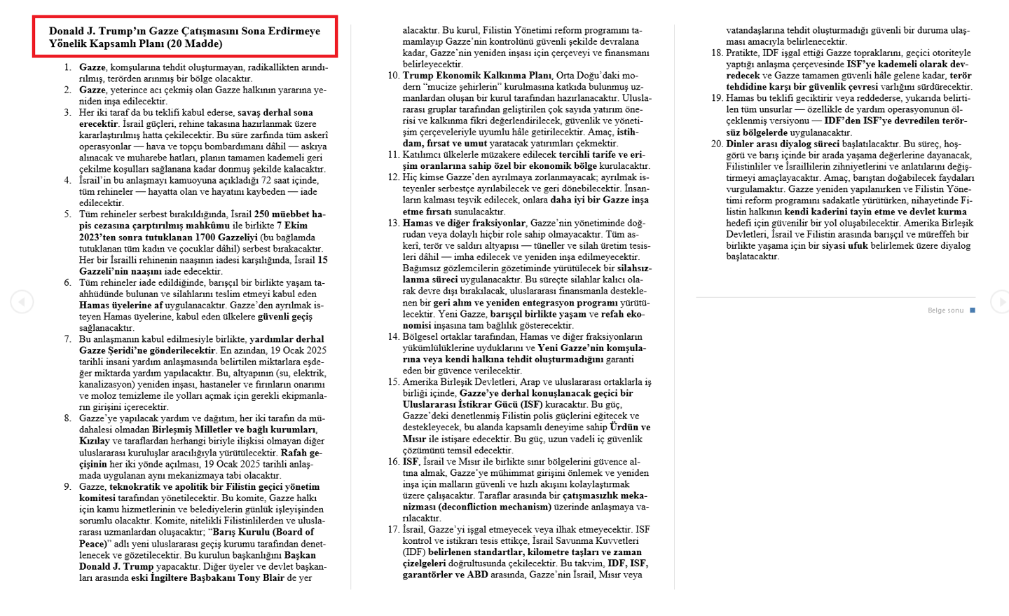 📌 Not: Bu yazının sonunda, Trump’ın 20 Maddelik Gazze Planı ve Şarm el-Şeyh Barış Deklarasyonu görsel olarak yer alacaktır. Okuyucular, bu belgeleri doğrudan inceleyerek manipülasyonun metin düzeyinde nasıl gizlendiğini kendi gözleriyle görebilir.